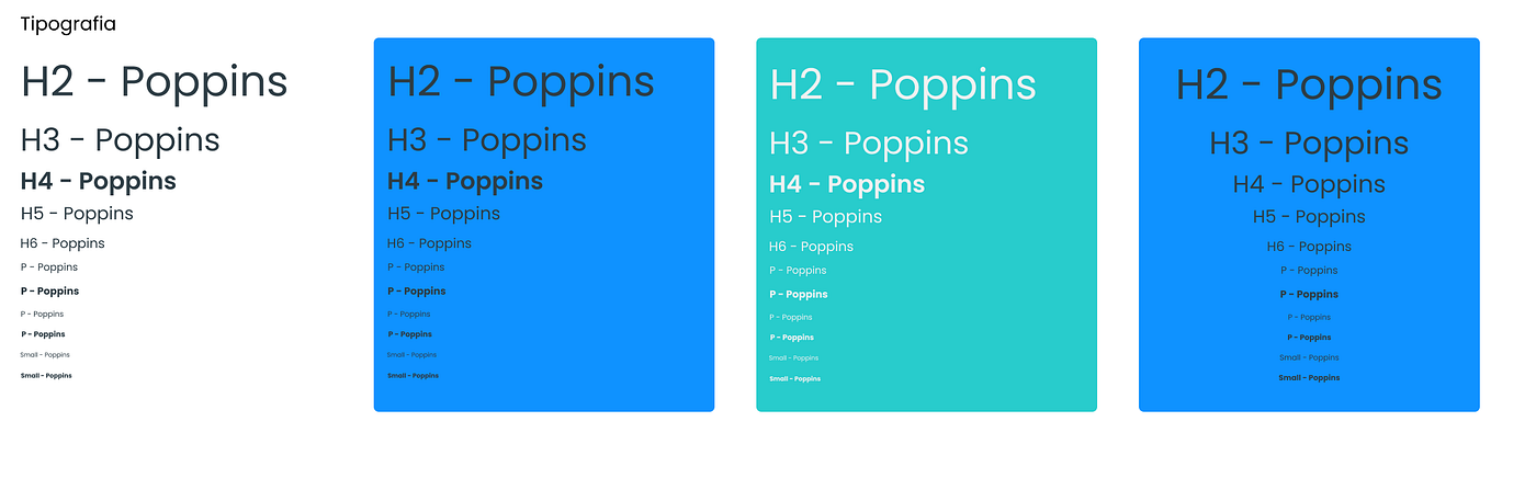 Selecionamos a Poppins pois é uma fonte do Google, possibilitando um fácil carregamento para o usuário, tem uma boa legibilidade, com design elegante e possui diversos pesos, podendo ser usada de várias formas. Ela foi colocada em backgrounds e cores claras e escuras para testarmos seu contraste em diferentes contextos.